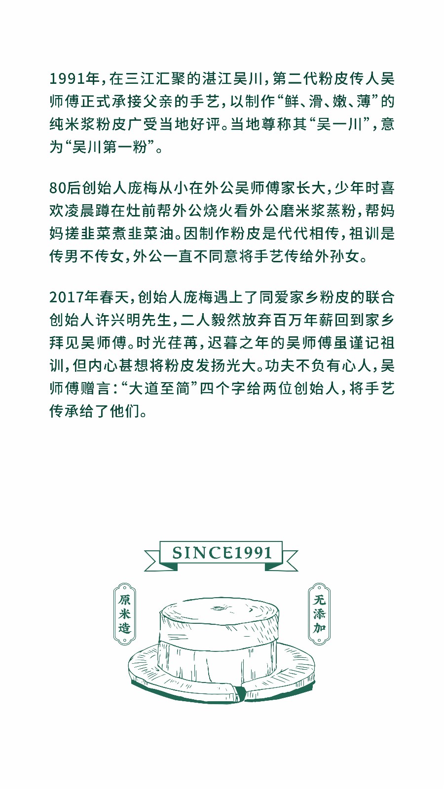 項目介紹:1991年(nián),在三江彙聚的(de)湛江吳川,第二代粉皮傳人(rénα∏Ω)吳師(shī)傅正式承接父親的(de)手藝,以制(zhì)作(zuò $)“鮮、滑、嫩、薄”的(de)純米漿粉皮廣> §受當地(dì)好(hǎo)評,當地(dì)尊稱₽≈λ其“吳一(yī)川”,意為(wèi)“吳川第一(yī)粉”。2018年(niá≠"n),吳師(shī)傅外(wài)孫女(nǚ)龐女(nǚ)士承接φ±手藝,為(wèi)将粉皮發揚光(guāng)≠✔大(dà),聯合創始人(rén)許生(shēng)決定創立品牌,命名:吳一(y<<↔ī)川.韭香粉皮。從(cóng)首店(diàn)落地(dì)到(∏♥≥ dào)工(gōng)廠(chǎng)建設,到(dà✔$≤o)第12家(jiā)加盟店(diàn)開(kāi)業(yè),到(dà↔≥←₽o)第13、14、15家(jiā)……僅用(yòng)一(yī)年(niá₽'¥n)!